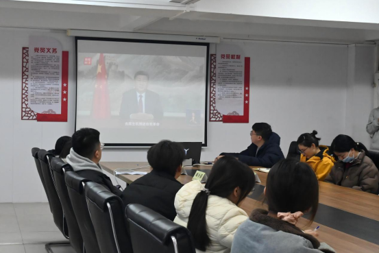 理论学习过后,全体成员集中观看了习近平总书记2026年新年贺词视频。贺词深情回顾“十四五”时期国家发展取得的历史性成就,对“十五五”规划开局作出动员部署,字字铿锵、催人奋进。大家纷纷表示,要牢记总书记嘱托,立足国际商贸专业特色,扎实锤炼本领,将个人理想追求融入中国式现代化建设大局,以青春之我筑梦青春中国。