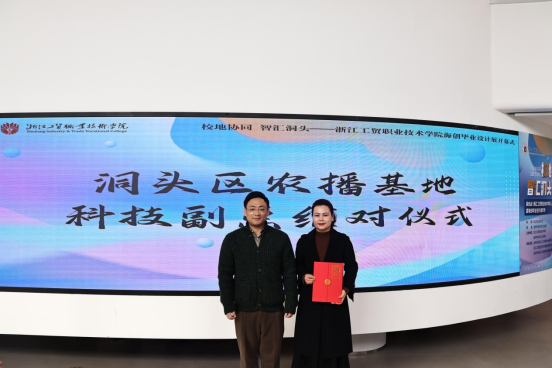随后,现场举行了洞头区海创空间实习实践合作签约仪式与科技副总结对农播基地仪式,标志着校地在共建实践平台、助力乡村振兴方面迈出实质性步伐。