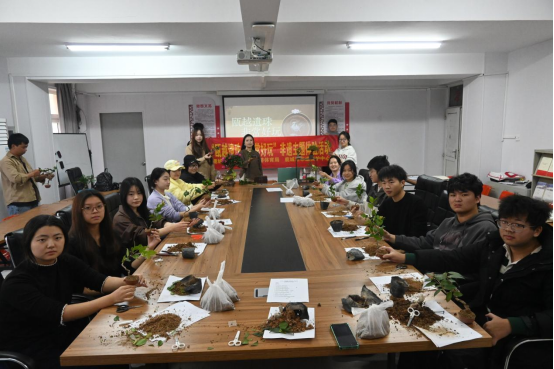 此次茶花盆景制作活动,是非遗系列主题活动的重要组成部分,更是校园文化节的特色亮点。它以生动有趣的实践形式搭建起非遗传承与校园文化的沟通桥梁。既让同学们近距离接触了温州盆景技艺这一非物质文化遗产,更在实践中深化了对中华优秀传统文化的认同与热爱。未来国际商贸学院将继续举办此类活动,致力于非遗文化的传播与推广,让更多人感受非遗艺术的独特魅力,让“瓯越遗珠”在代代相传中焕发新的生机。