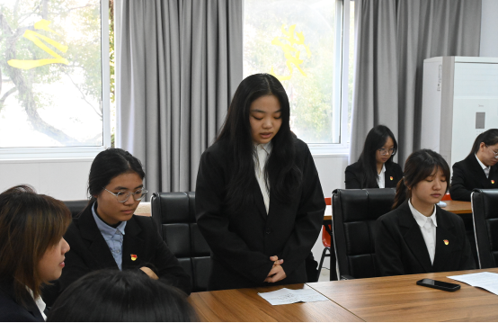 商数2302班白雪同学代表全体预备党员发言。她表示,成为一名预备党员是政治生命的新起点,今后必将时刻以党员标准严格要求自己,铭记入党誓词,不忘初心、牢记使命。在学习中勤奋刻苦、夯实专业根基;在实践中勇挑重担、真诚服务师生;在纪律上严于律己、不断锤炼党性,努力成长为一名让党组织放心、让人民群众满意的合格共产党员。