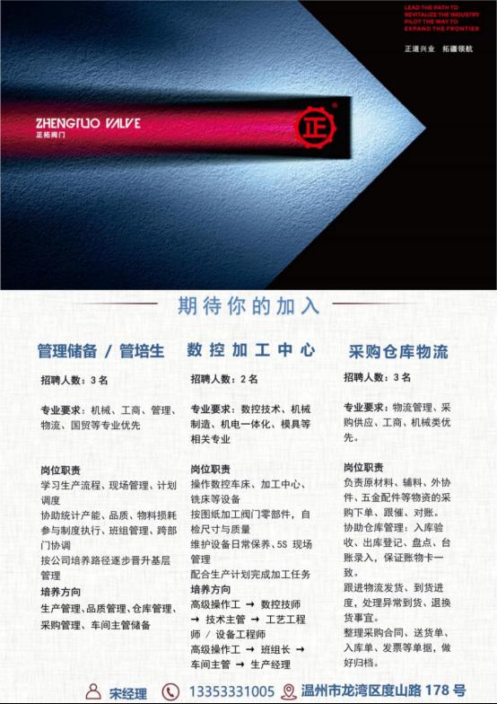 正拓阀门毕业生招聘